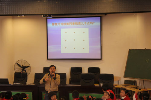 活动中,长沙市科技创新特色工作室首席名师肖宗文对长鸿实验学校的500多学生进行了一场科普知识讲座。肖老师的讲座主要从四个环节对孩子们进行辅导,第一、九株连线,主要是让学生能够知道发明创新一定要打破常规,跳出框框思考问题。第二、发现问题,肖老师通过设计生活中出现的问题让学生发现问题,列举了“喝开水”、“扳柚子”等生活案例。第三、解决问题,根据问题让学生思考怎么去解决问题。知道解决问题的方法有很多种,怎样选择最好的一种解决方案。第四、动手能力、教师先后出示“黄瓜条快速切割器”、“开水直饮散热式吸管”、“柚子扳开器”。让学生上台操作发明作品,让学生体验发明创新带来的好处。通过这一系列的教学活动,学生自然就形成了做一件发明创新作品的流程。通过生活中的发明作品的介绍,树立了发明创新来源于我们生活,只要善于发现和思考一定能发明一件发明作品来。