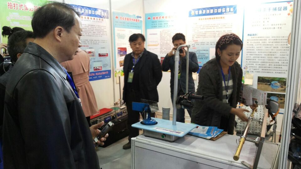 11月22日,为期5天的第八届国际发明展览会在江苏昆山花桥国际博览中心落幕。肖宗文科技创新特色工作室在顾问谭迪熬老师的指导下,工作室精心准备并组织参加,喜3金4银7铜的好成绩。其中长郡芙蓉中学陈水章老师指导的学生发明的汽车轮胎扎伤实时监测报警泥挡、安全节能尖热式充电烙铁,天心区沙湖桥小学自动消毒门把手,获得金奖,此外还有宁乡金洲中心小学刘章平老师指导的茶叶采摘器,芙蓉区育才小学罗洪波老师指导的自动汽车换气空调获得银奖。汽车轮胎扎伤实时监测报警泥挡、安全节能尖热式充电烙铁还获得宝钢青少年发明奖。
