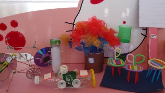“家用自动擦鞋器”、“小小晒袜架”、“拍打式除螨器”、“不倒蛋”···一件件充满智慧的科学小发明,让学生将课堂上所学的科学知识运用到了实际创作与生活中,并学会了像科学家一样大胆发现并积极解决问题。科学小制作充分展现了科学技术、社会、环境与生活、美育的紧密联系,塑料袋鲜花、分类垃圾箱、果壳花篮、火箭模型···都充分体现了同学们对于低碳生活和科技发展的关注。