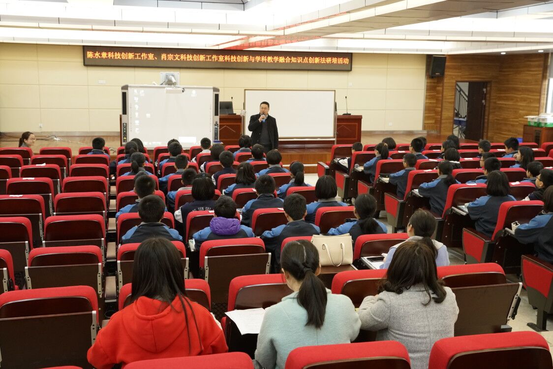 3月30日,长沙市肖宗文科技创新特色工作室联手芙蓉区陈水章科技创新名师工作室开展“科技创新融合学科教学激探创知识点创新法”研培活动,在长郡芙蓉实验中学举行。本次活动得到工作室名师、芙蓉区陈水章科技创新名师工作室首席陈水章老师精心安排。虽然天下大雨,但丝毫没有阻挡大家参加活动的热情,长沙市肖宗文名师工作室和芙蓉区陈水章名师工作室的全体成员早早地来到环境优美的长郡芙蓉中学,期待这次活动的开始,同时出席这次活动的还有长沙市少年宫科技活动部龚树梁、芙蓉区科技教研员杨军等。