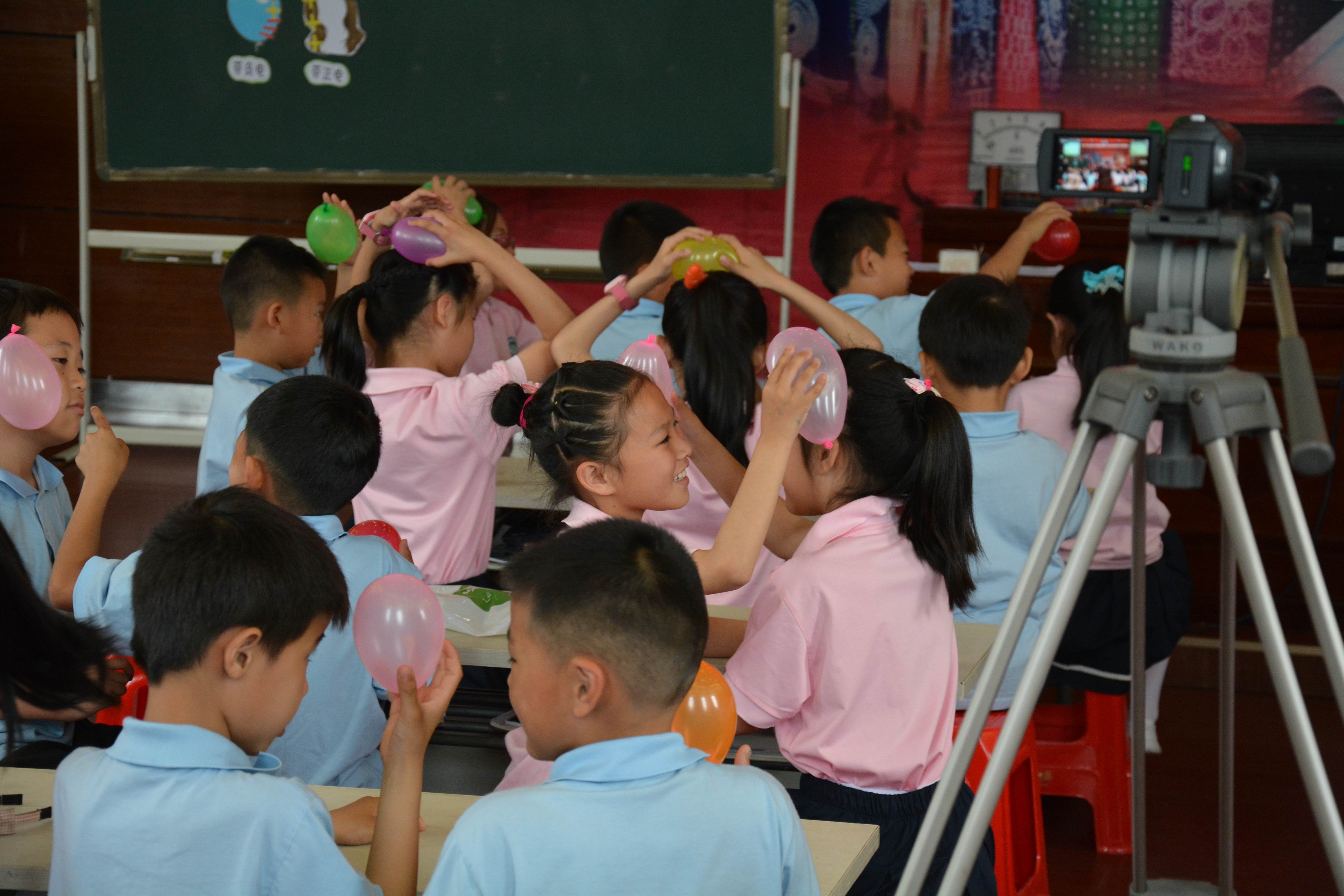 在第二节课中,刘老师带领三年级的孩子一起感受、学习《生活中的静电》。课堂一开始,刘老师就组织学生们进行了丰富的体验活动,让学生们在体验中感受“电荷”、了解“电荷”。最后刘老师结合实际生活中的“静电刷”、“静电除尘”等装置,引导学生利用静电的相关原理解决生活中的实际问题。课堂上,学生通过体验活动了解和认知静电,并对静电进行探究,在探究学习的过程中,学生们表现出浓厚的兴趣并且相互之间进行了交流、分享。整堂课层次分明,井然有序。