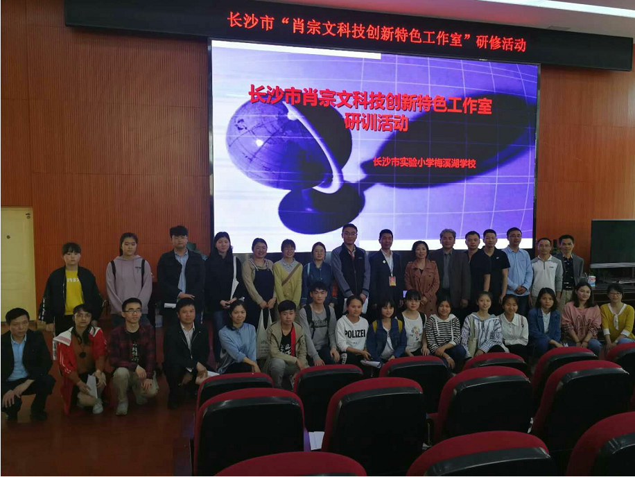 为了促进长沙市科技创新工作室团队成员的成长,提高工作室成员青少年科技辅导员的业务水平和科技活动的质量。4月19日,肖宗文科技创新特色工作室在长沙市实验小学梅溪湖学校开展研训活动。参加本次活动的领导和专家有:长沙市教育局教师工作处陈利群处长、长沙理工大学李文健教授、长沙市实验小学梅溪湖学校付大庆校长、第一师范学院何志坚教授及第一师范学院科教班部分学员。