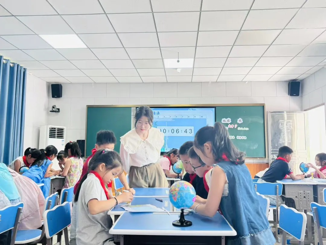 走近《地球——水的星球》,李文老师用月壤中的重大发现——水巧妙引入课堂,实验环节通过“十指法”抛接地球仪实验引发探究,让学生发现指尖落海洋次数多却难精准量化的问题,进而引导探索“数格子法”“拼接法”,再借助卫星遥感技术验证,得出海洋面积大于陆地面积的结论。课堂从整体认知到引导探究,再到创新实践,让学生在实验中理解海陆分布,讨论中认识水资源稀缺,培养节水意识。
